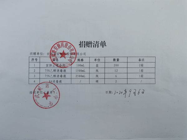 金秋九月,涼風送爽,又是一年開學季。為進一步助力疫情防控工作有效開展,弘揚“普惠眾生、安康萬家”的企業理念,近日甘肅藥業集團普安制藥(以下簡稱:普安制藥)向甘肅畜牧工程職業學院、武威第七中學捐贈宣肺止嗽合劑、乙醇消毒液、84消毒液等防疫物資,向涼州區黃羊實驗小學捐贈了20套愛心體育包(含籃球、足球、排球、羽毛球、乒乓球等)和一批防疫物資(宣肺止嗽合劑、乙醇消毒液和84消毒液),用實際行動支援疫情防控,助力開學季。