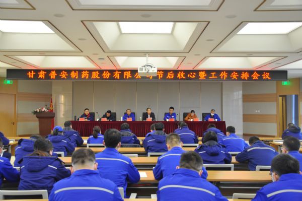 2月18日上午,普安制藥組織副主任及以上管理人員、工程技術人員召開了2021年春節節后收心暨工作安排會議。此次會議是提升普安制藥廣大干部職工節后工作紀律意識、團結鼓勁、調整狀態的收心會,也是明確目標、理清思路,推進2021年目標任務完成的部署會。