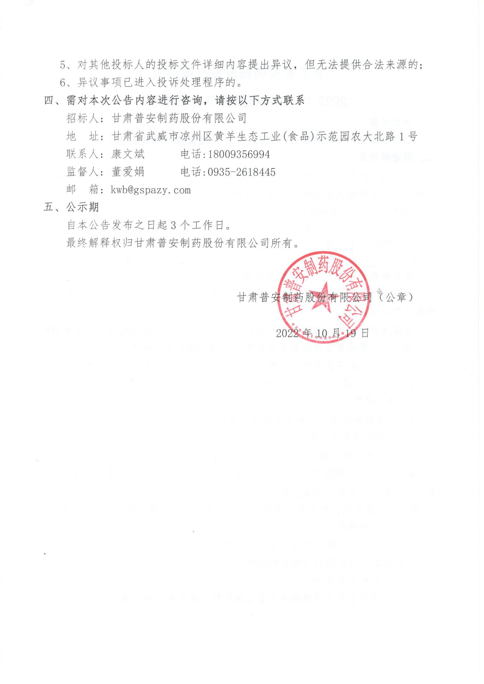 甘肅普安制藥股份有限公司2022年10月燃煤招評標結(jié)果的公示