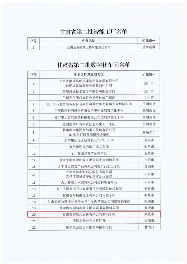 〖創(chuàng)新驅(qū)動 智能制造〗熱烈祝賀甘肅藥業(yè)集團普安制藥制劑車間通過甘肅省第二批數(shù)字化車間認(rèn)定