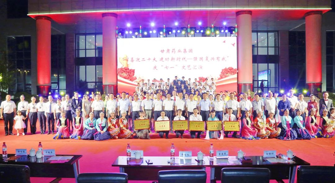 為慶祝中國共產黨成立101周年,回顧黨的奮斗歷史,謳歌黨的光輝歷程,6月29日晚,由甘肅藥業集團主辦,隴神戎發承辦的 “喜迎二十大 建功新時代—強國復興有我”慶“七一”文藝匯演在隴神戎發廠區舉行。甘肅藥業集團黨委委員、監事會主席李繼紅,黨委副書記、董事、工會主席王賢斌,黨委委員、副總經理康海軍,黨委委員、紀委書記、監察專員陶銀科及集團部分部室和子公司負責同志、隴神戎發全體員工、普安制藥部分職工共300余人歡聚一堂,共同歌頌中國共產黨走過的光輝歲月,展望燦爛美好的新時代。