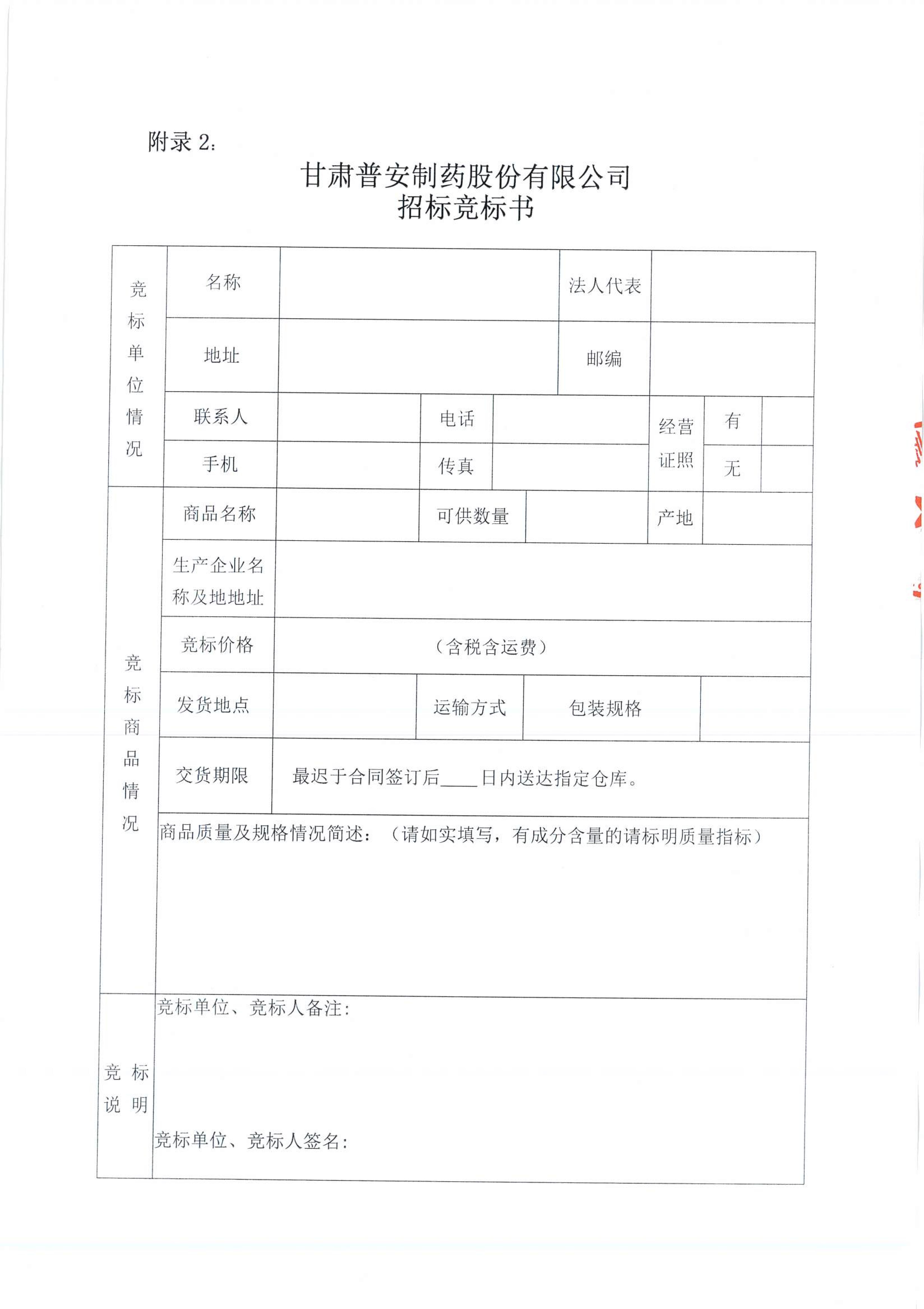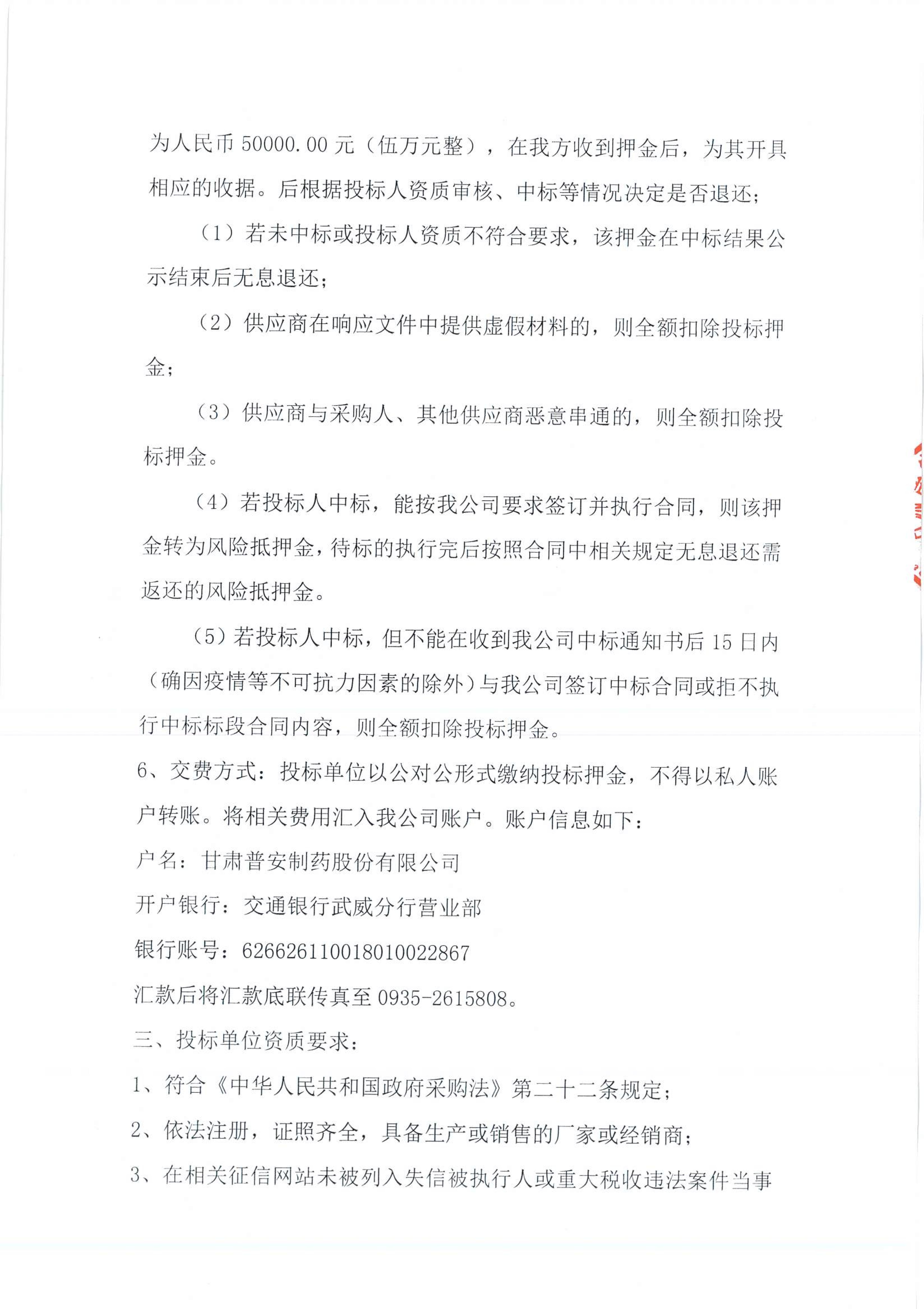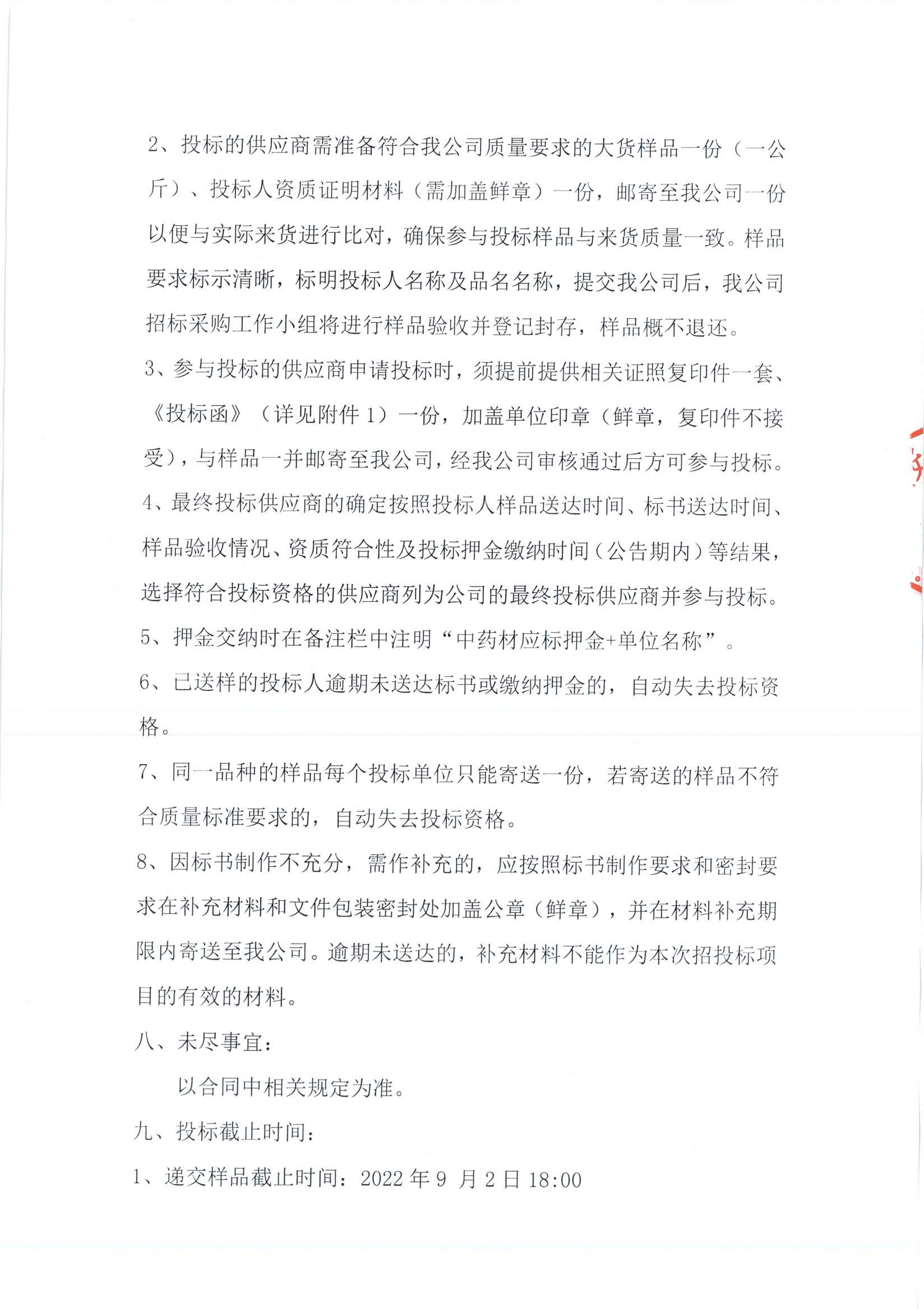 甘肅普安制藥股份有限公司2022年10月-2023年10月中藥材招標采購公告