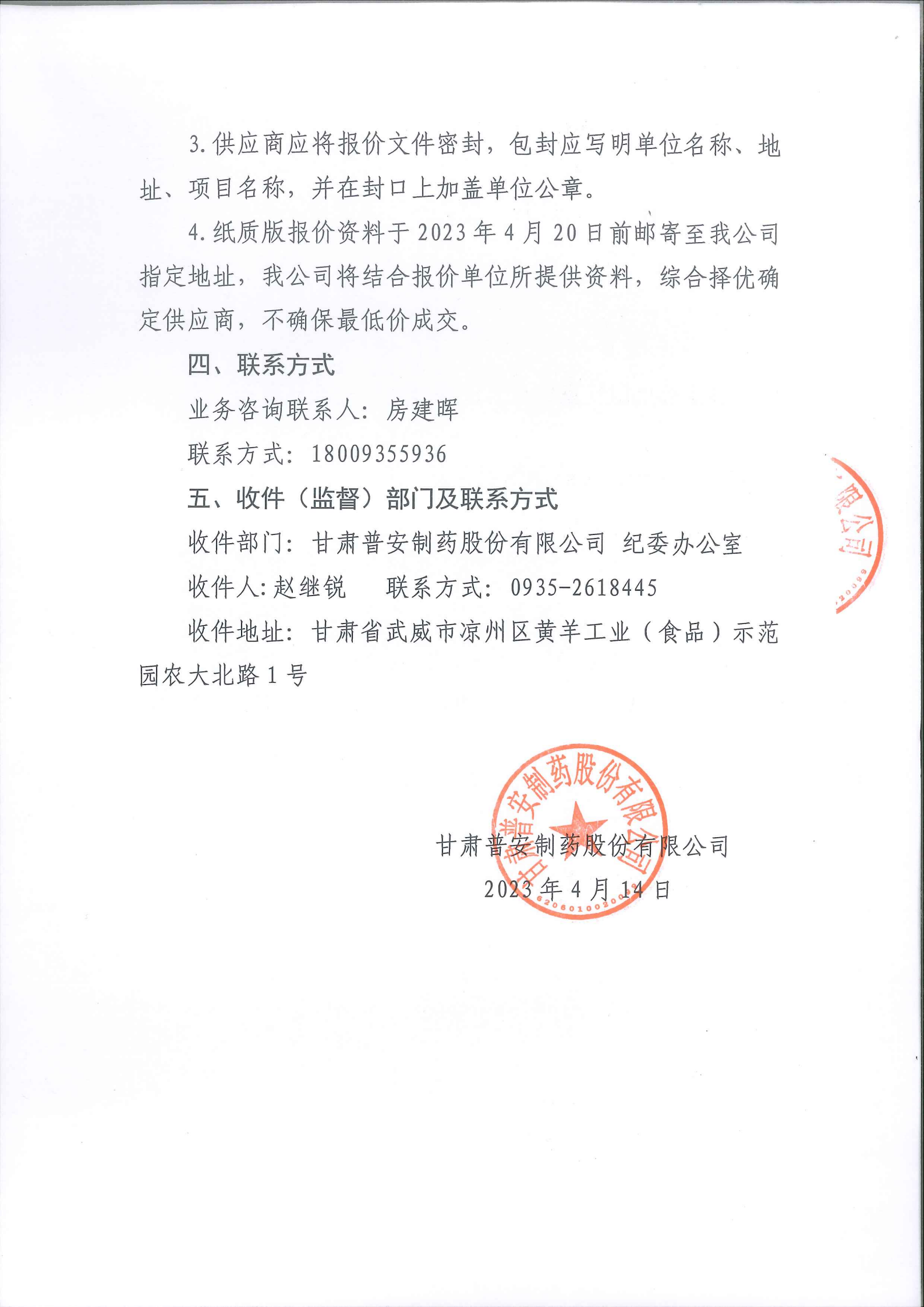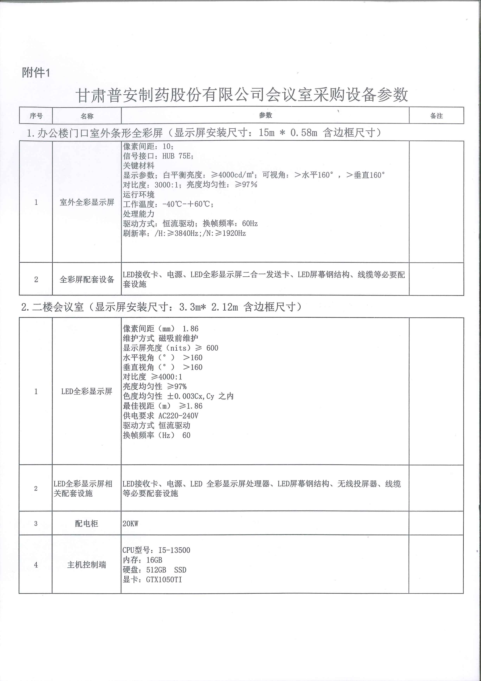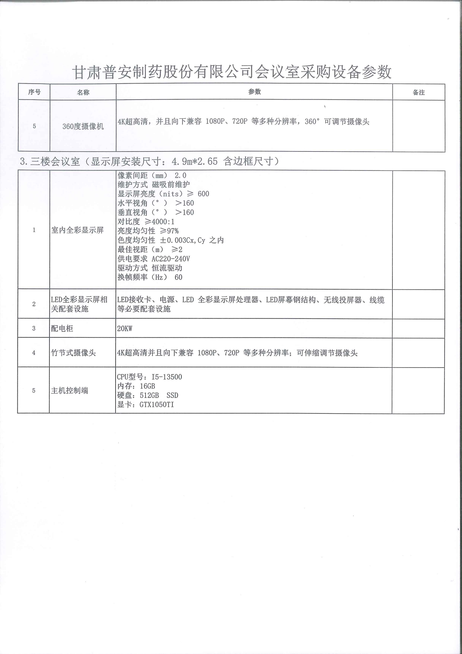 甘肅普安制藥股份有限公司會議室設備升級改造報價邀請公告
