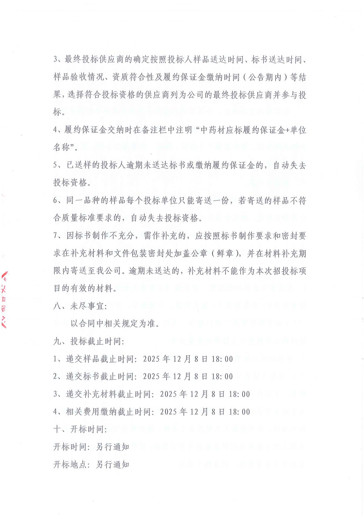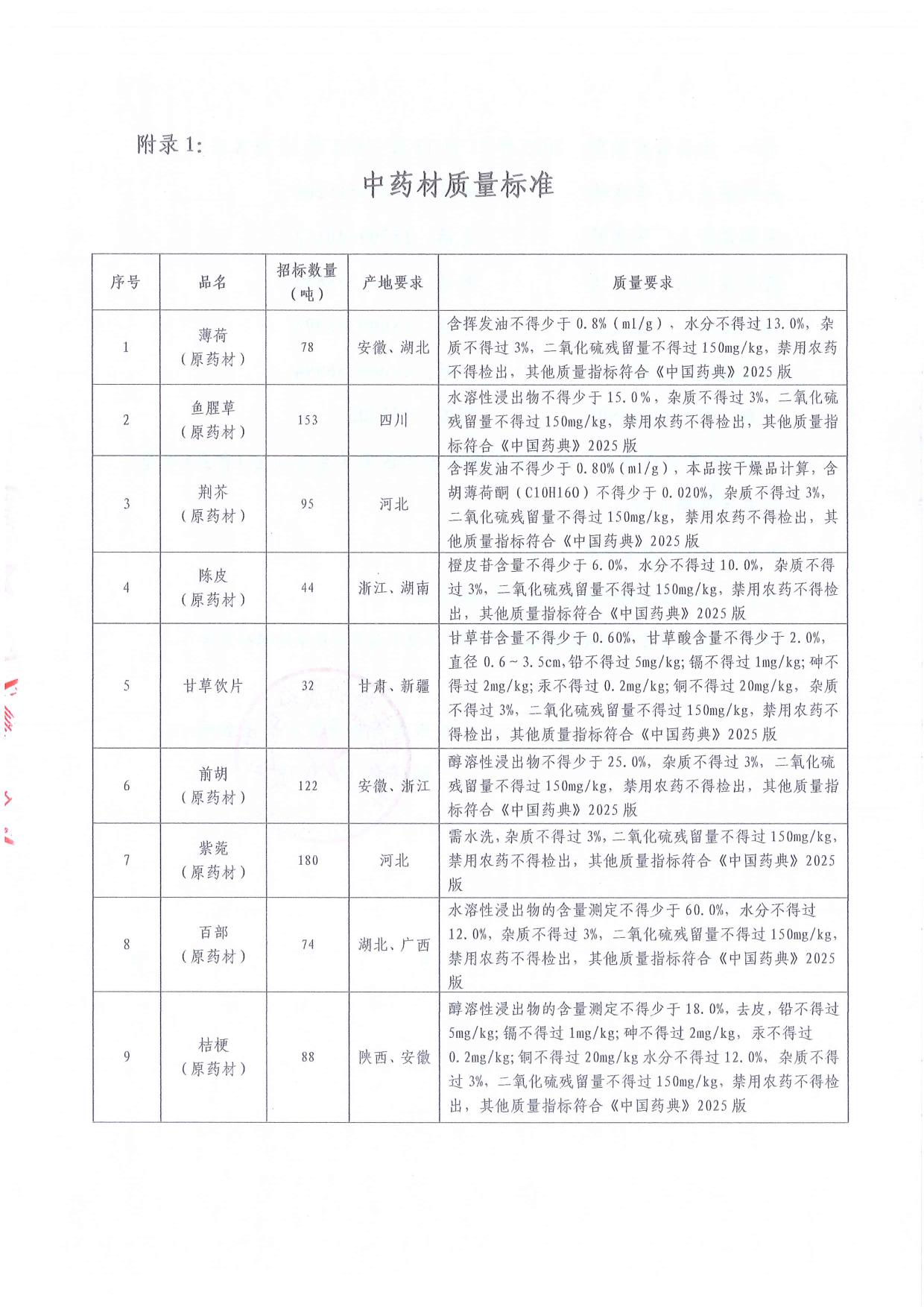 普安制藥2026年宣肺止嗽合劑中藥材招標公告