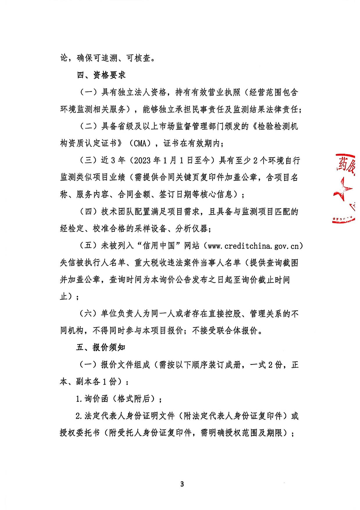 甘肅普安制藥股份有限公司 2026 年度環(huán)境自行監(jiān)測第三方委托詢價公告