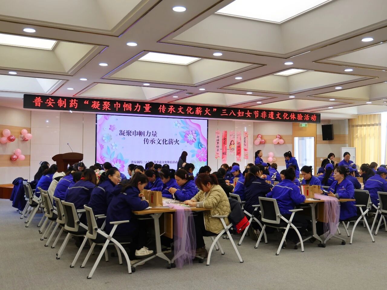 人間三月,芳華綻放。為慶祝第116個“三八”國際勞動婦女節,豐富公司女職工精神文化生活,弘揚中華優秀傳統文化,進一步增強女職工文化認同感、歸屬感與團隊凝聚力,3月6日,普安制藥工會以“凝聚巾幗力量,傳承文化薪火”為主題,在三樓會議室精心組織非遺文化體驗活動。全體在崗女職工歡聚一堂,共赴一場傳統與美好交織的節日之約。